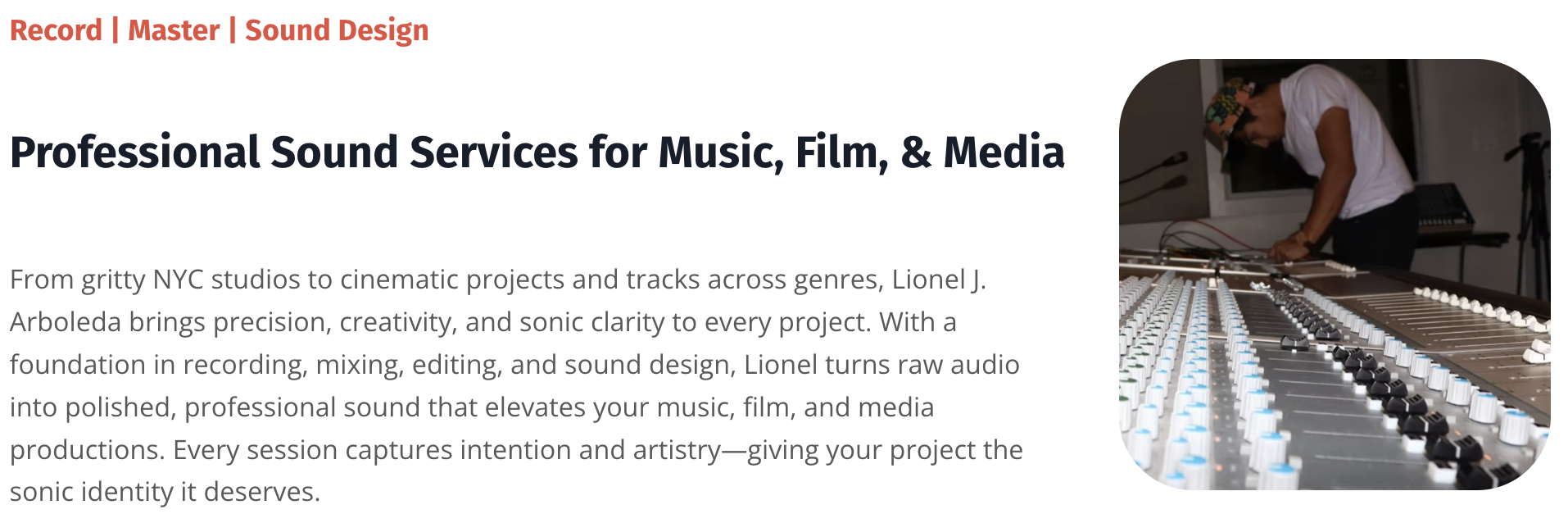 Sound isn’t just technical—it’s emotional. Lionel adds texture, atmosphere, and nuance to enhance mood, drama, and impact in music and visual projects.